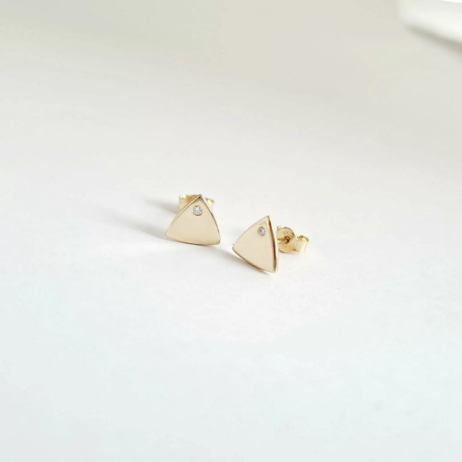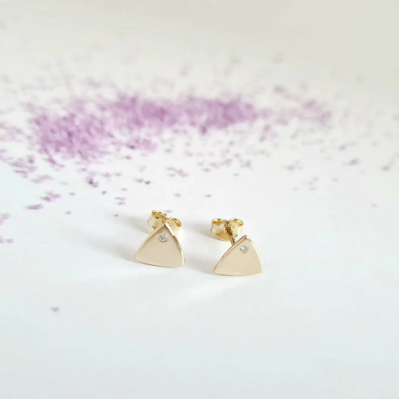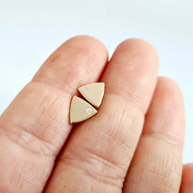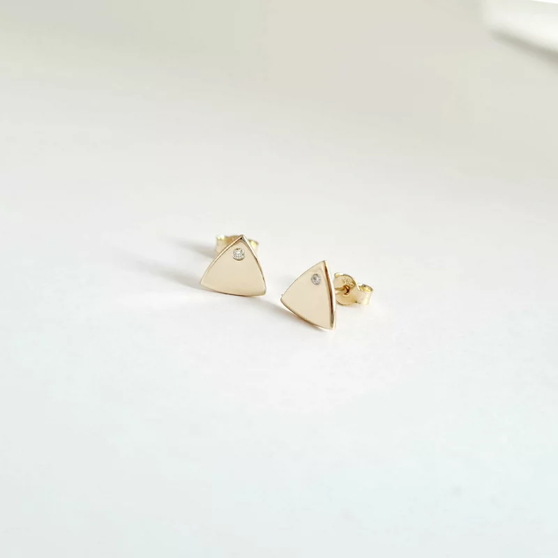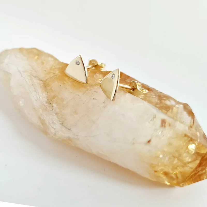 Háromszög Fülbevaló - 14K Sárga Arany - Természetes Gyémánt - Stekkeres