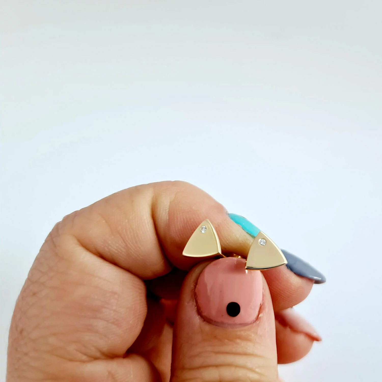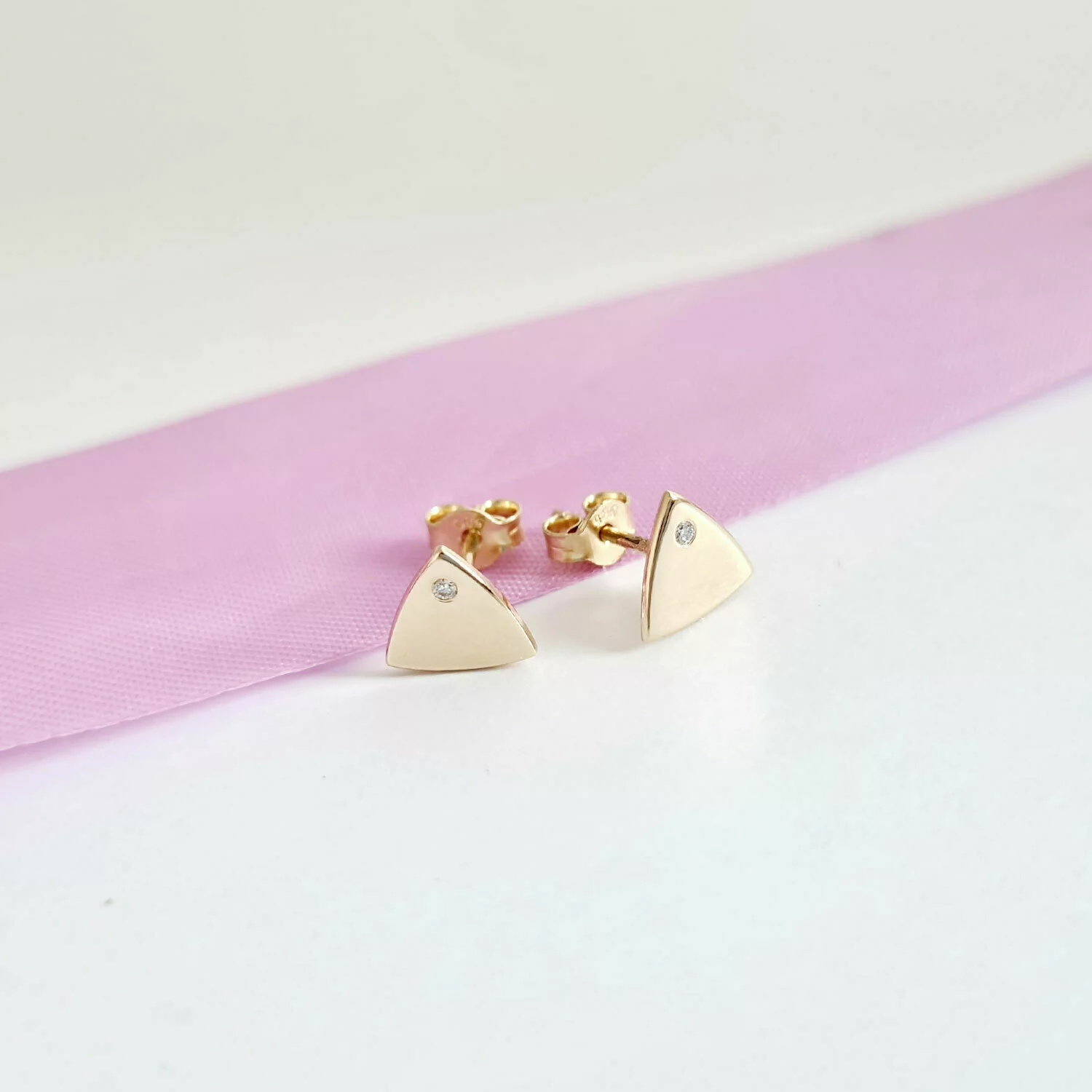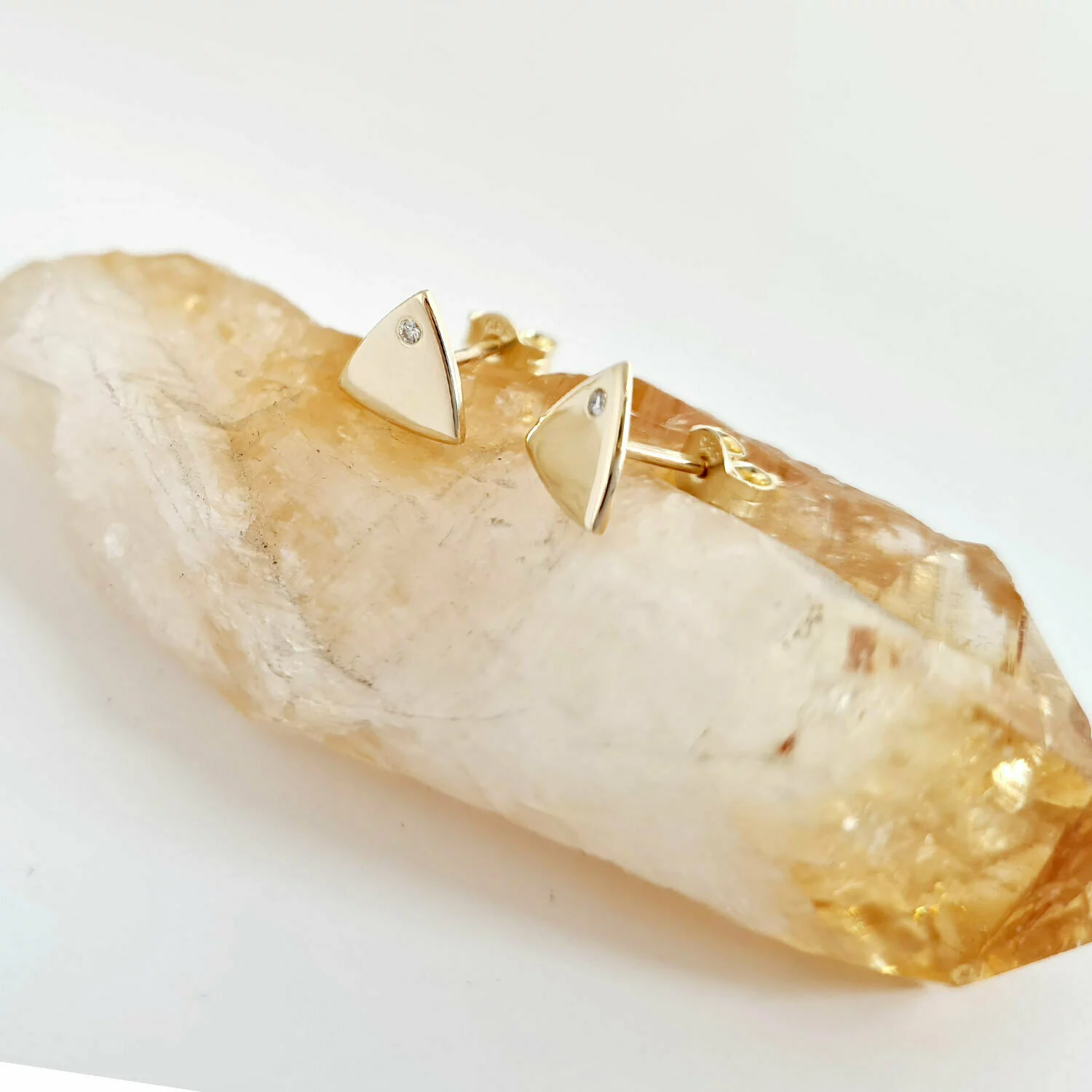 Háromszög Fülbevaló - 14K Sárga Arany - Természetes Gyémánt - Stekkeres