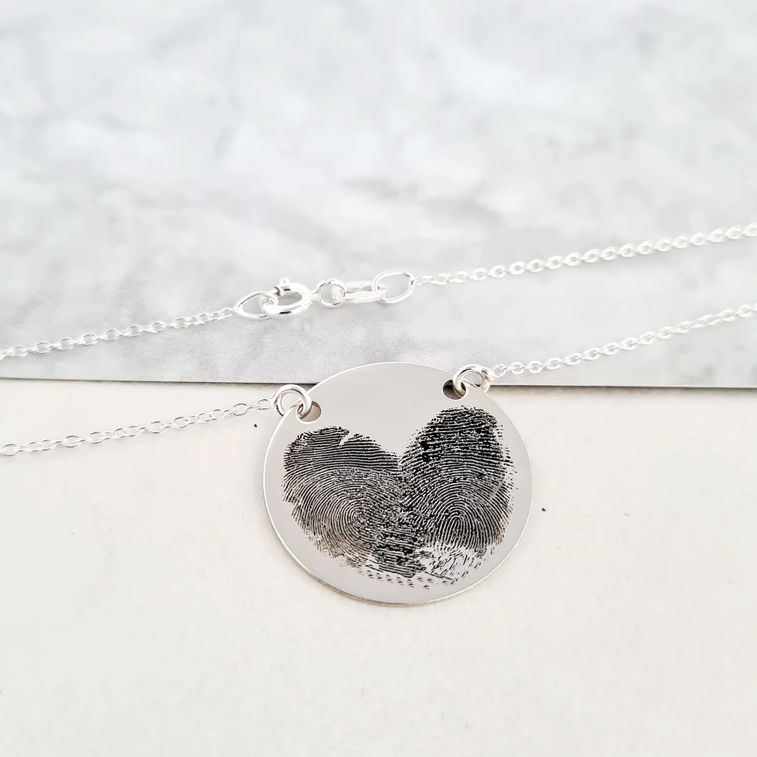 Ezüst Nyaklánc Szív Formájú Újjlenyomatokkal