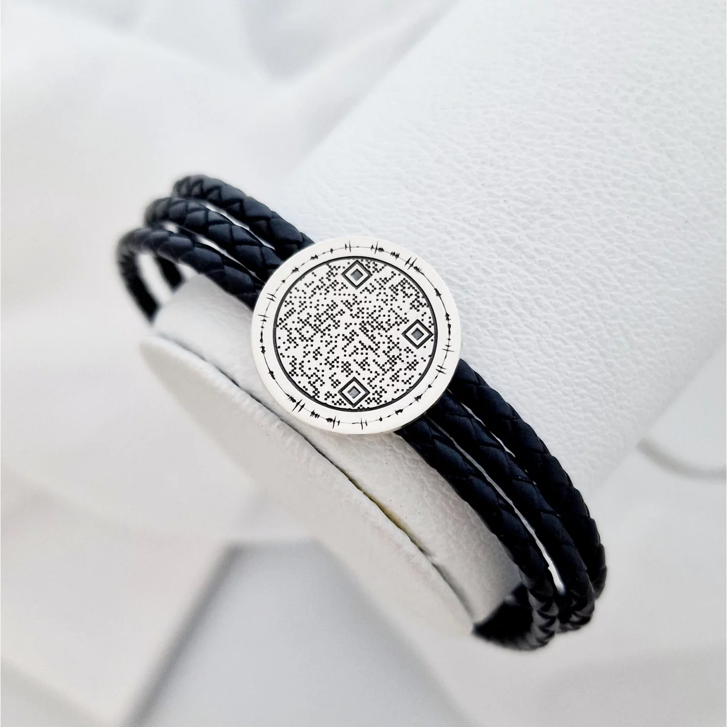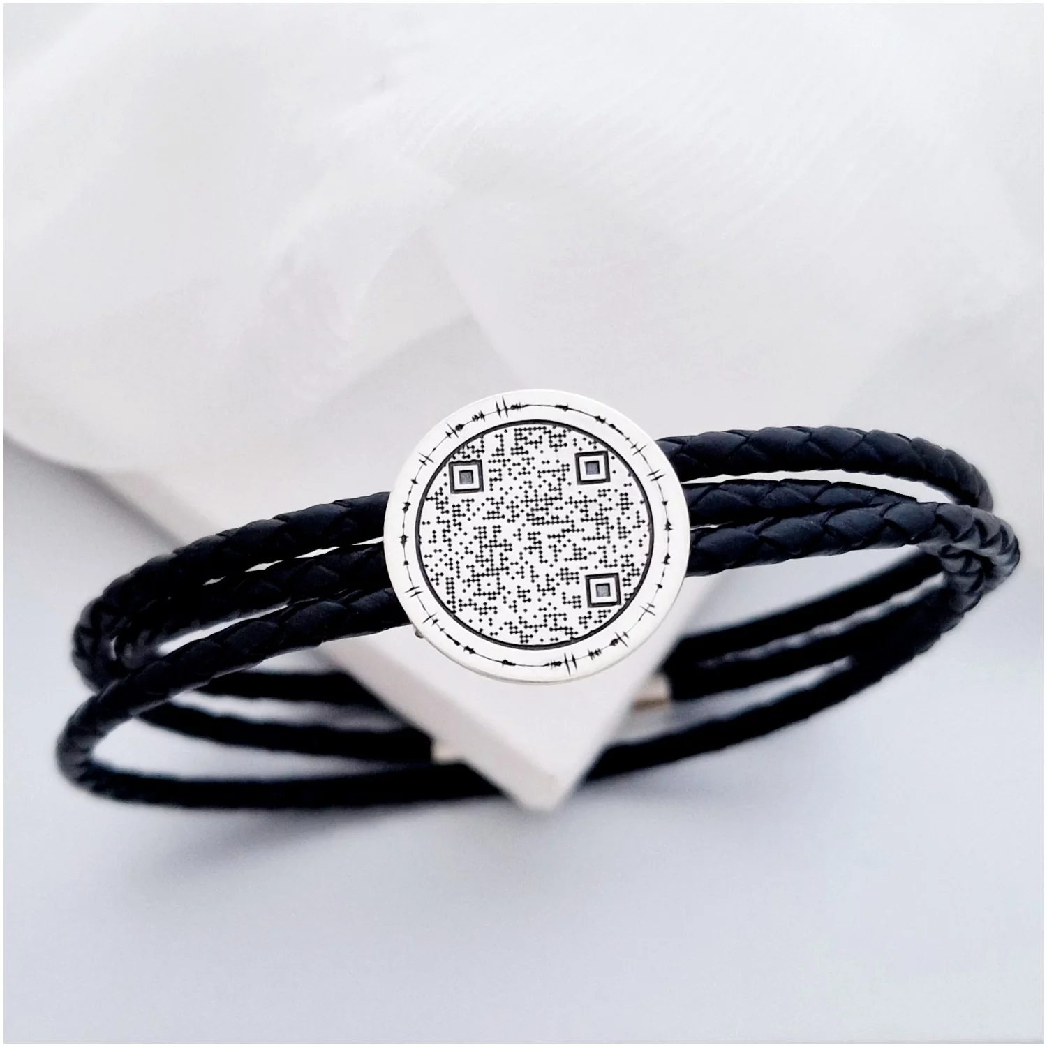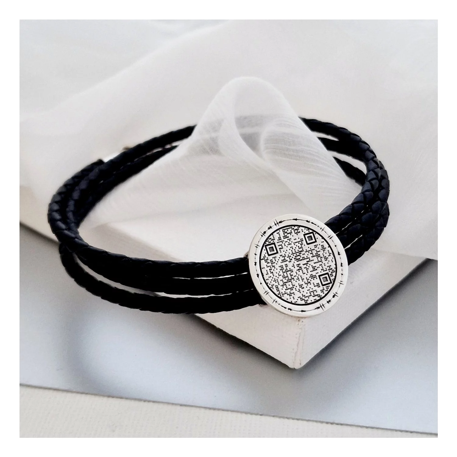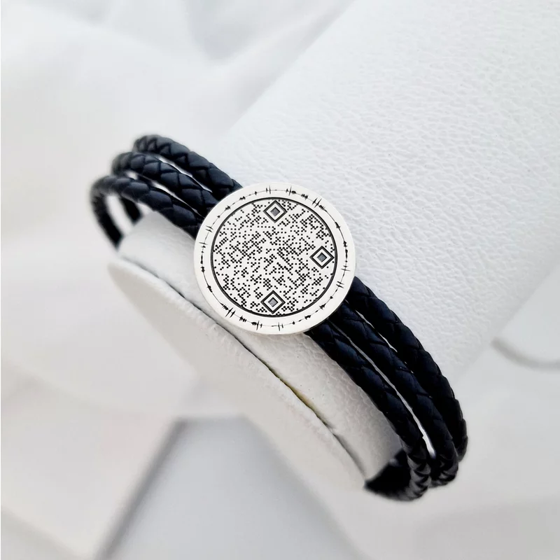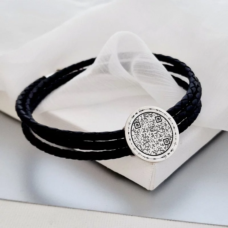 Ezüst QR Kód Érme Karkötő Három Rétegű Bőrrel