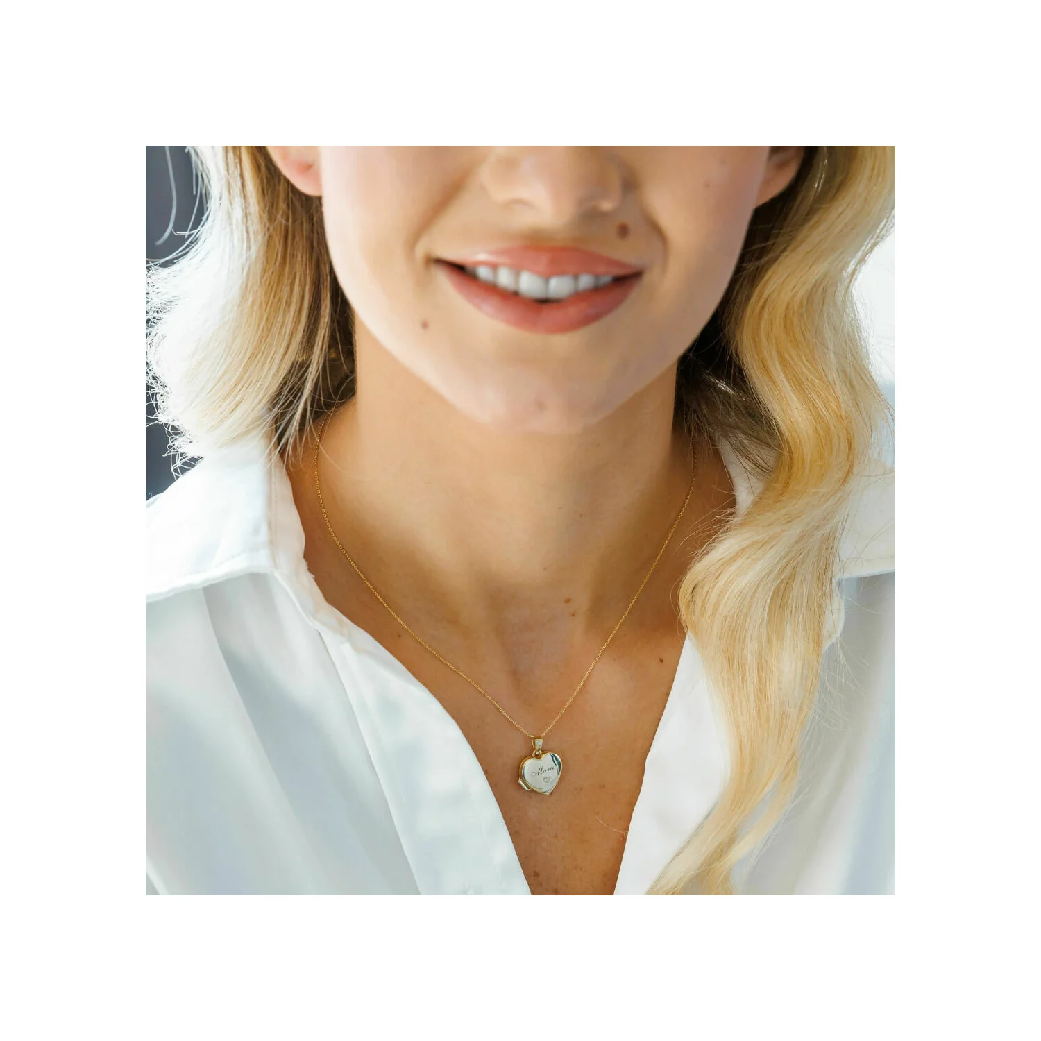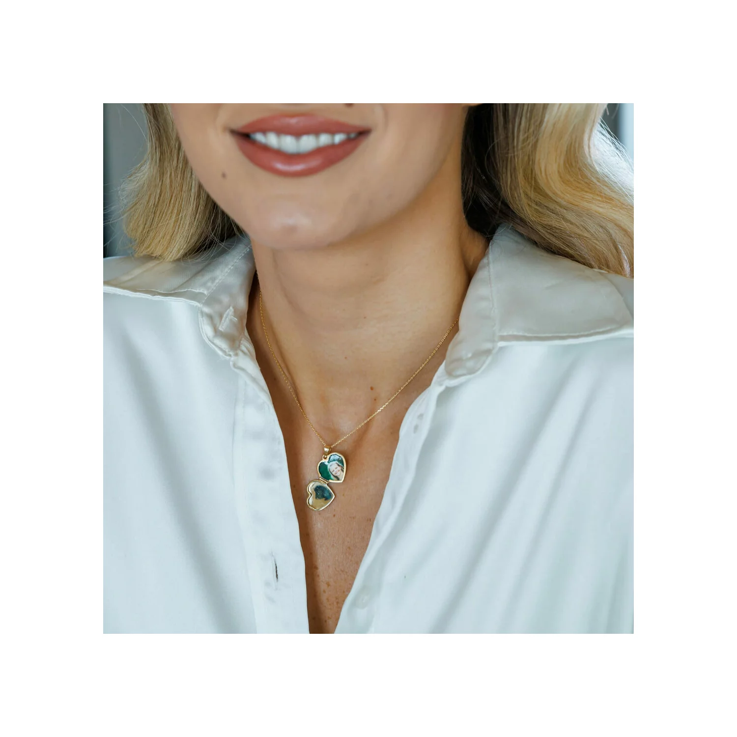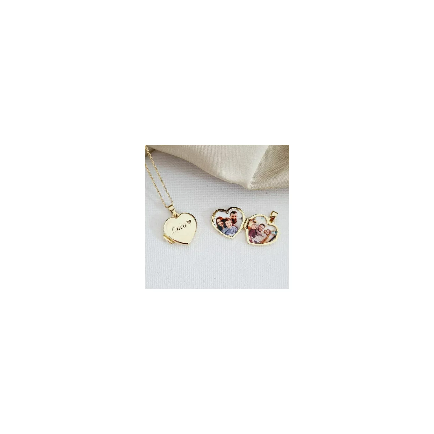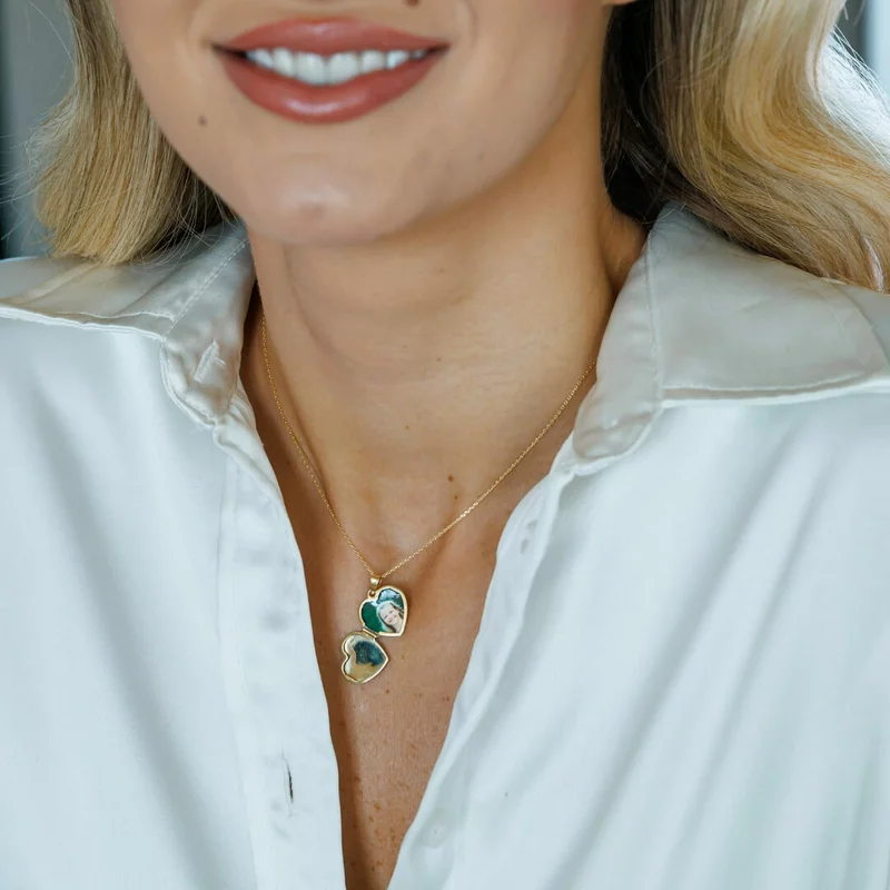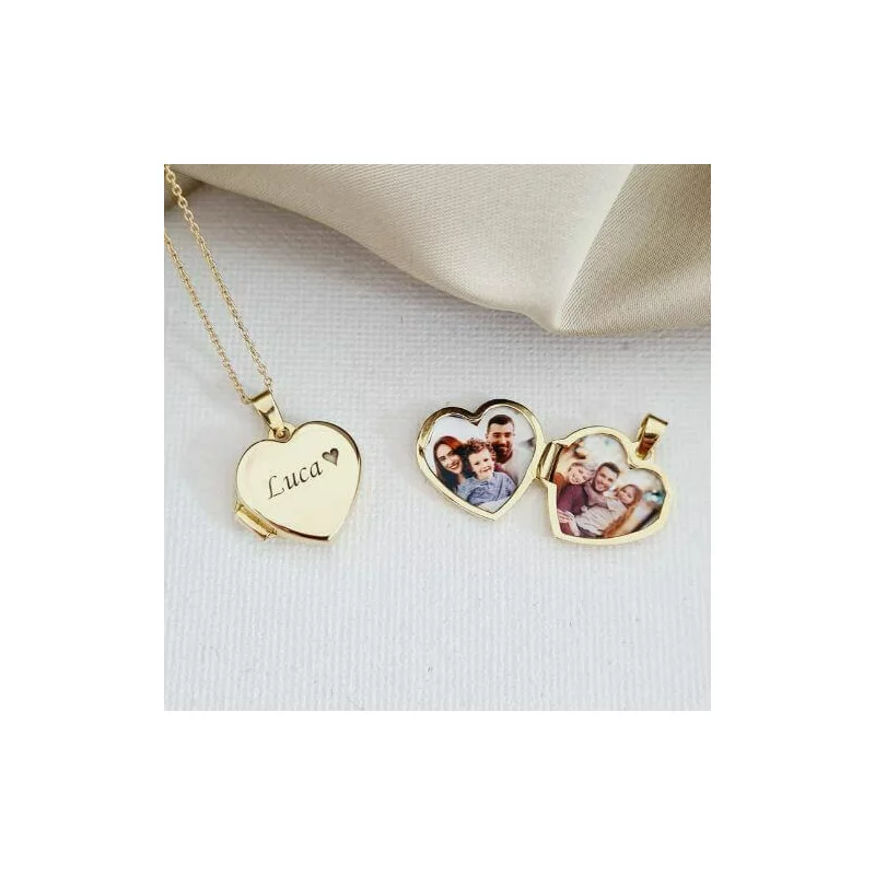 Az elegáns szív formájú medál kinyitható, hogy felfedjen egy-két személyes fényképet, amelyet mindig a szívedhez közel viselhetsz.