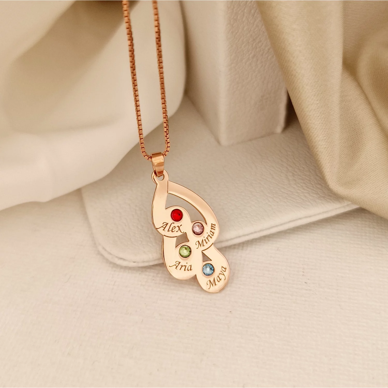 Érzelem Cseppek Nyaklánc - 4 Név - 18K Rozé Aranyozott 925 Sterling Ezüst Swarovski Kristály - Körkapocs