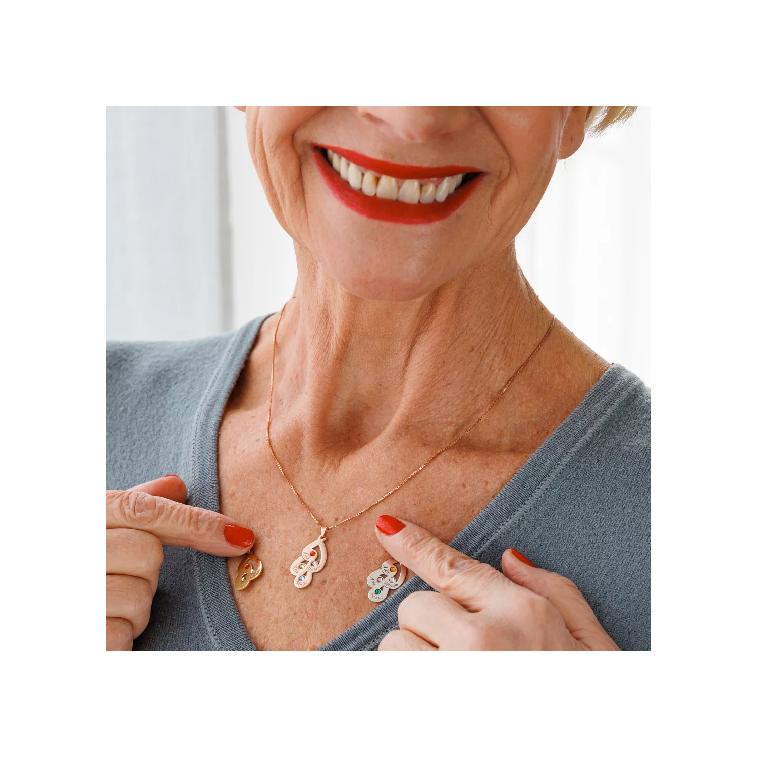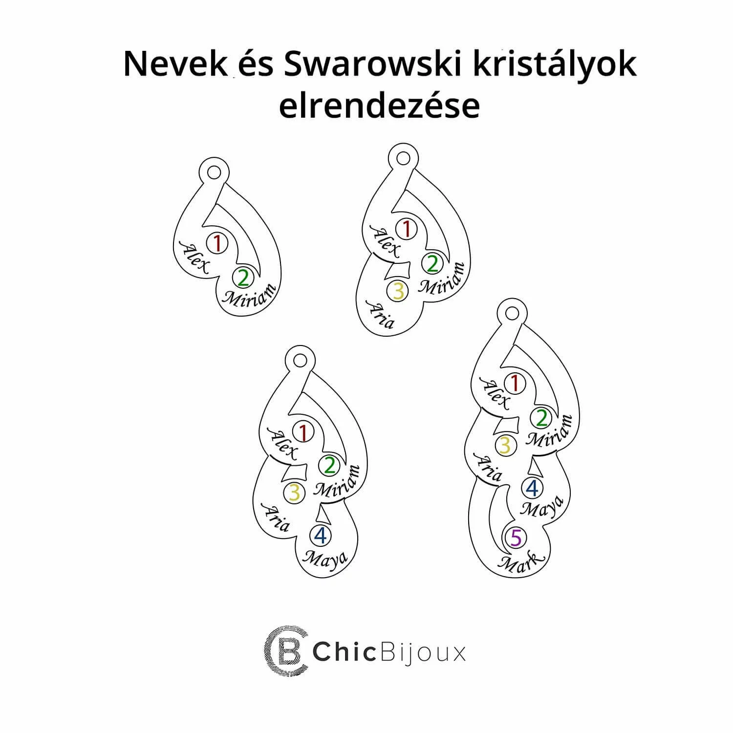 Ez a nyaklánc különleges és finom kialakítású, cseppeket ábrázol, amelyek mély és hiteles érzelmeket sugallnak. Minden cseppre egy név van gravírozva, a Swarovski kristályok csillogást kölcsönöznek, így egy olyan ékszert alkotva, amely érzelmekkel és kifinomultsággal is gazdagítja viselőjét. Maximum 5 név gravírozására van lehetőség.