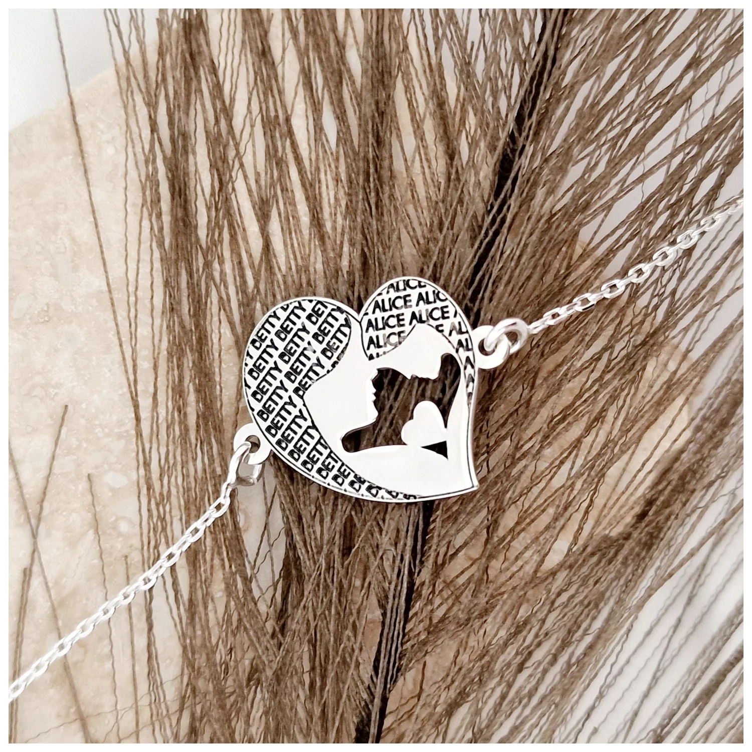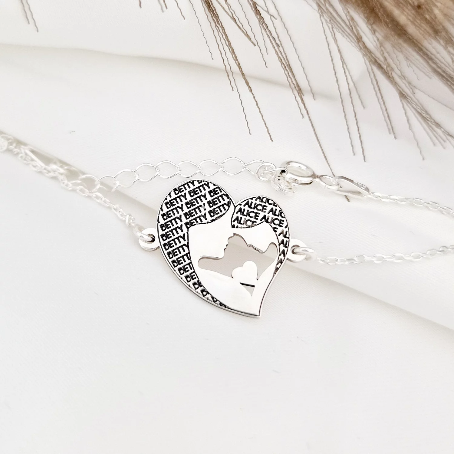 Ezüst Anya-Lánya Szív Karkötő lánccal