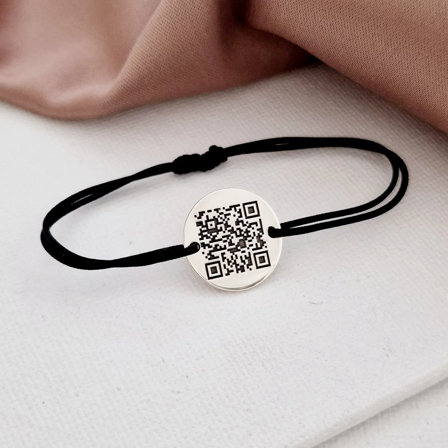 Ezüst Érme Karkötő - Qr Kód - állítható zsinórral