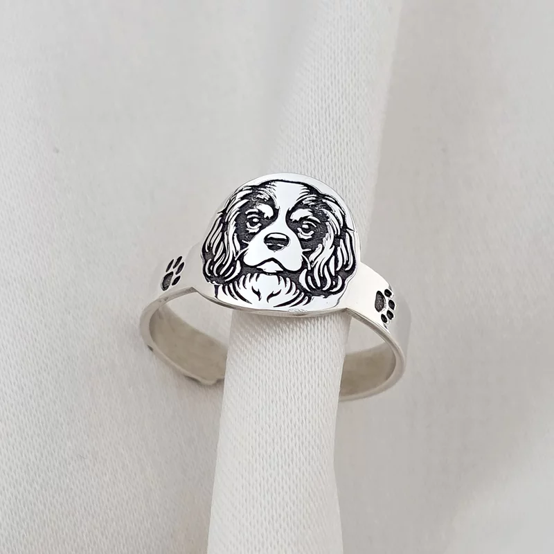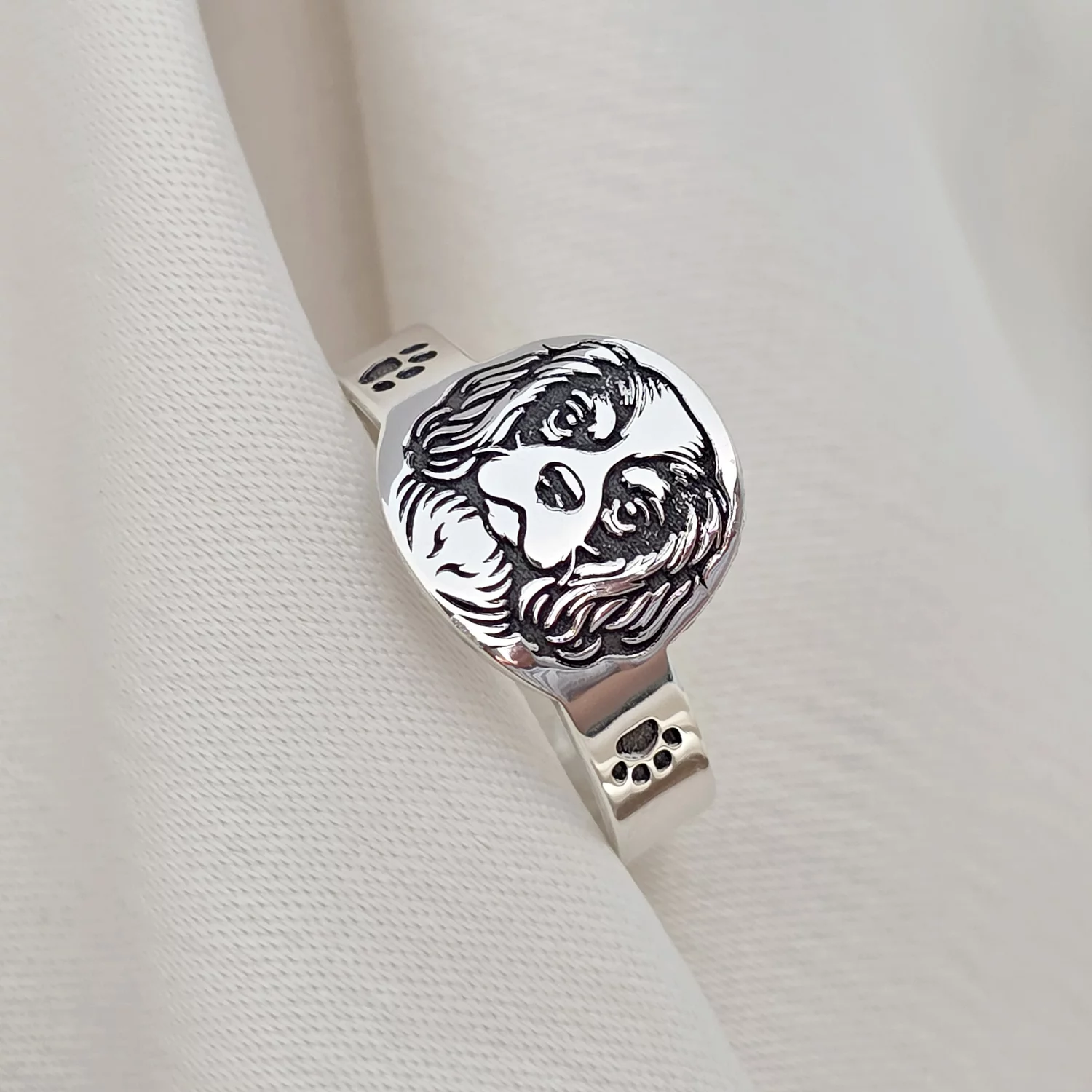 Ezüst Gyűrű Állatszeretőknek : Gravírozott Kutyus Fej - Az állatok iránti szeretet kifejezése