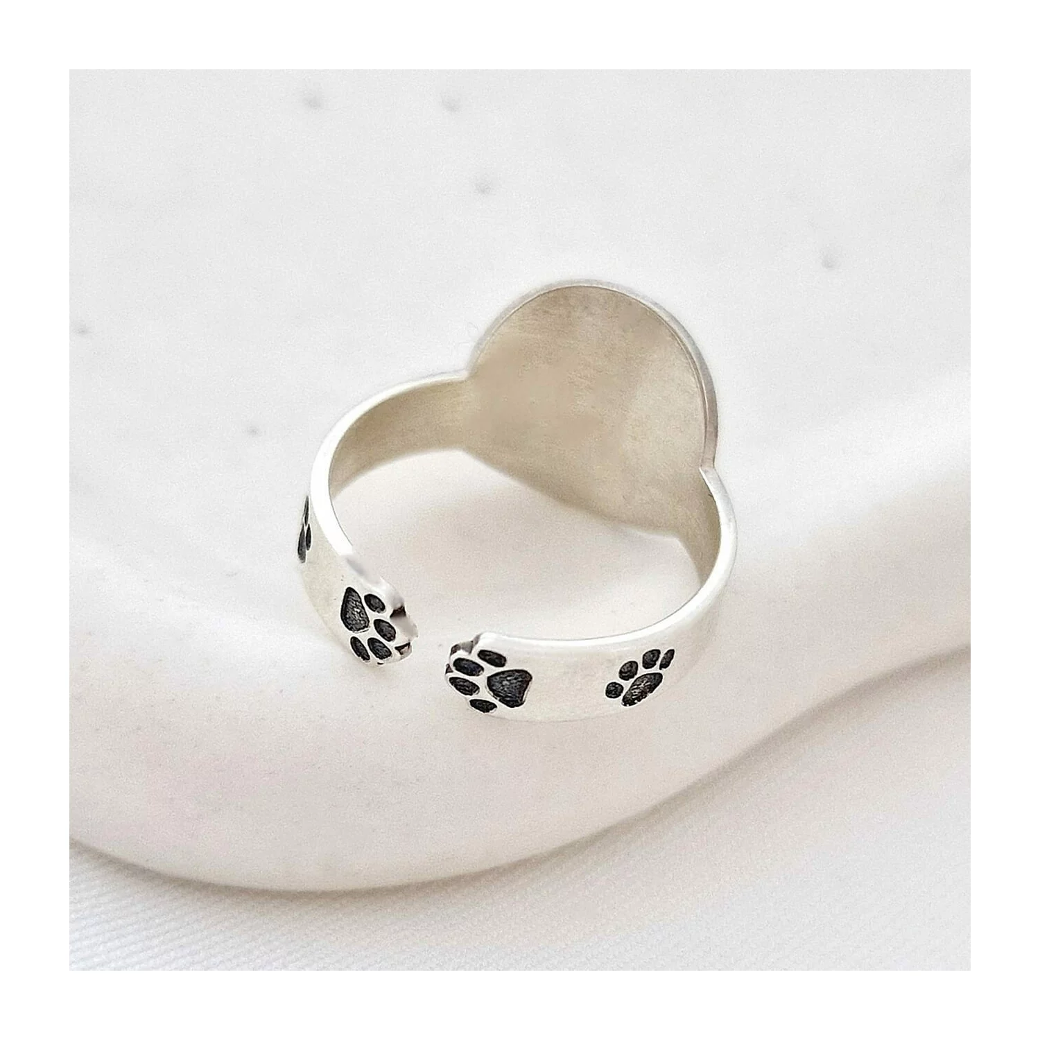 Minden részletének története van: a kutyus feje, amely mesterien van gravírozva, a hűséget és szeretetet jelképezi, míg a gyűrű sávján lévő finom tappancsnyom az állatok iránti feltétel nélküli szeretetet idézi. Ez a gyűrű több, mint egy kiegészítő – a te és kedvenced közötti különleges kapcsolat szimbóluma. Tökéletes választás mindennapi viselésre vagy ajándéknként egy állatbarátnak.