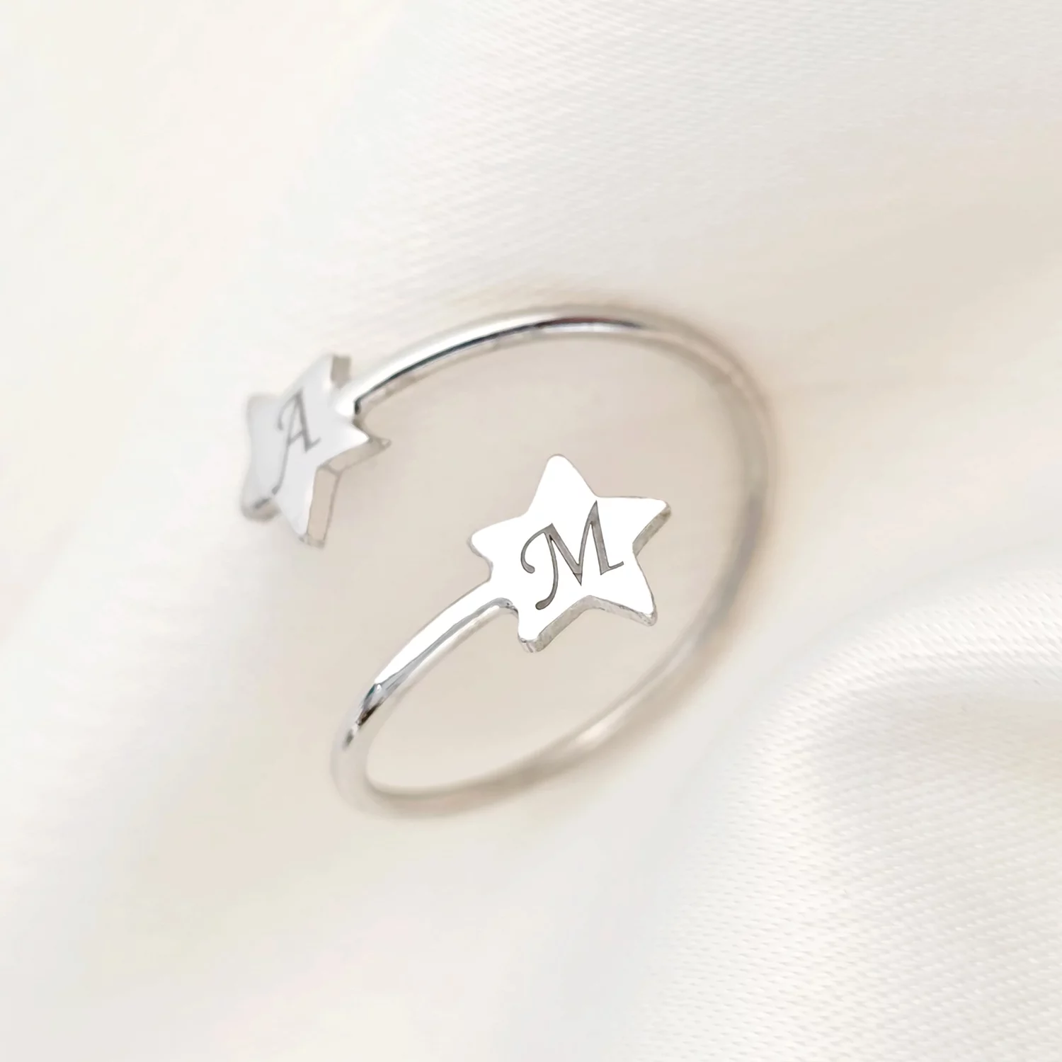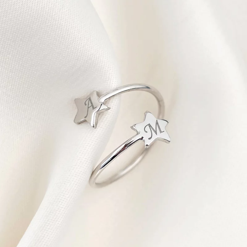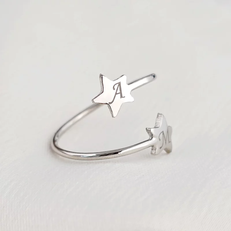 Ezüst 2 Csillag Állítható Méretű Gyűrű