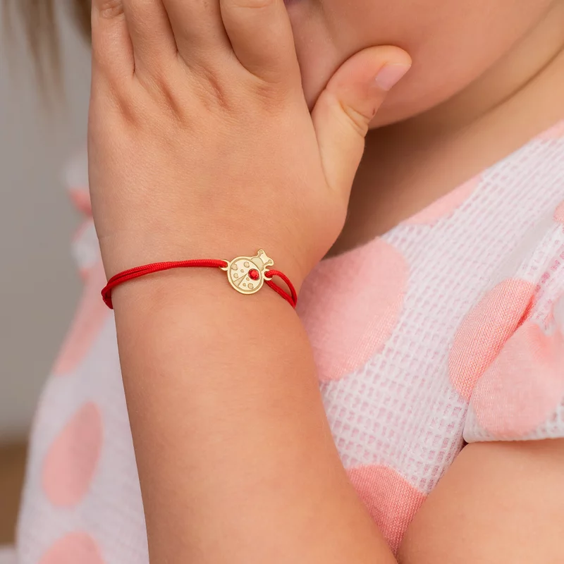 Katicabogár Karkötő - 18K Sárga Aranyozott 925 Sterling Ezüst Katica - Swarovski Kristály - Állítható Méretű Zsinór