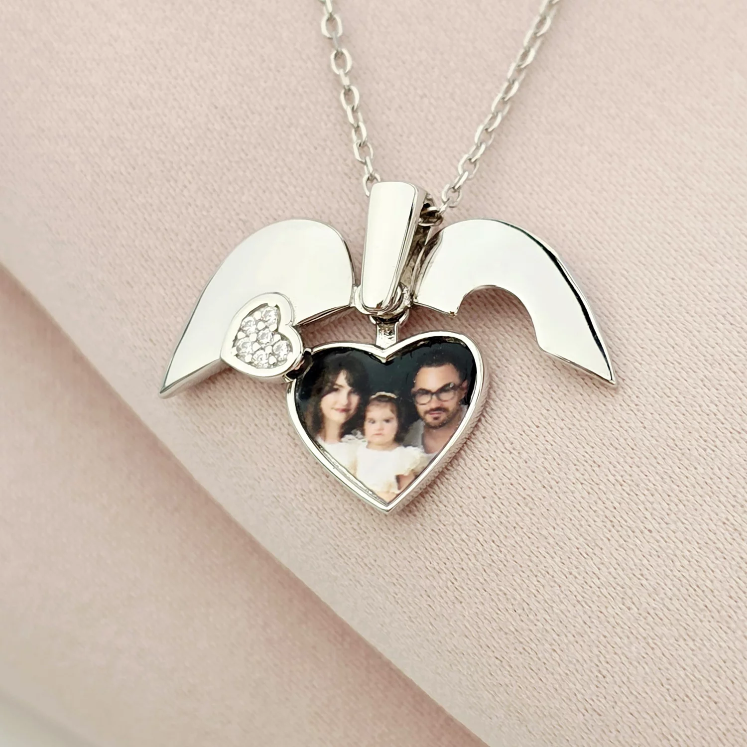 Ezüst Fényképes Szárnyas Szív Nyaklánc