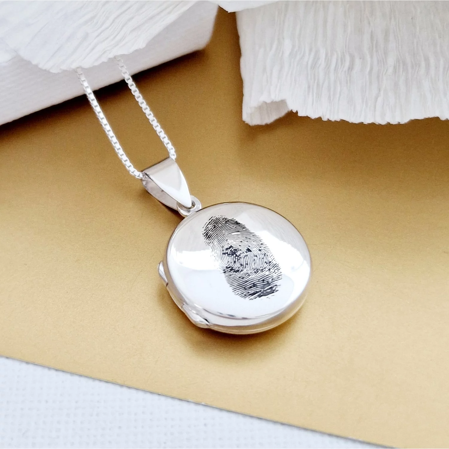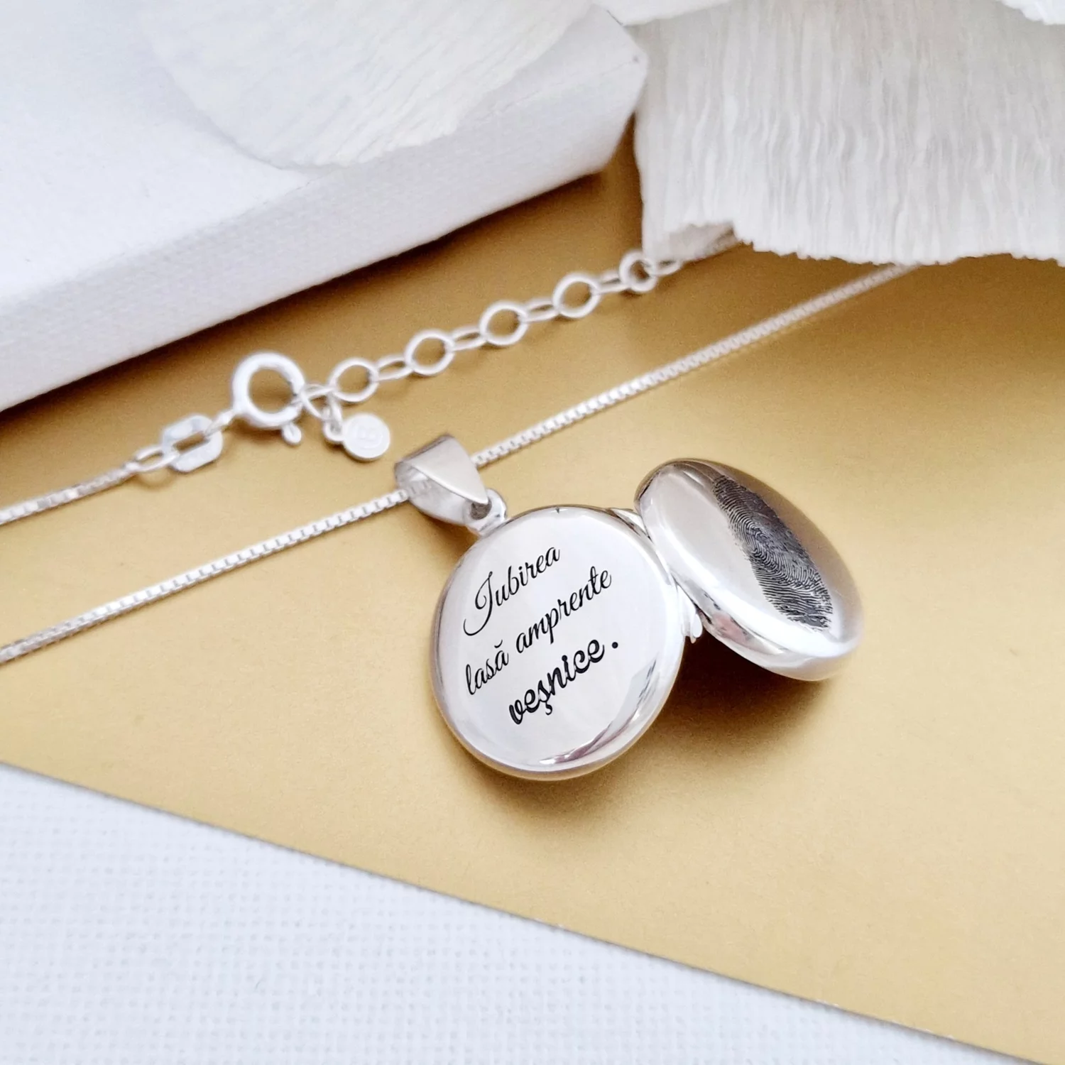 Fényképes Kerek Nyaklánc - Ujjlenyomat - 925 Sterling Ezüst - Körkapocs