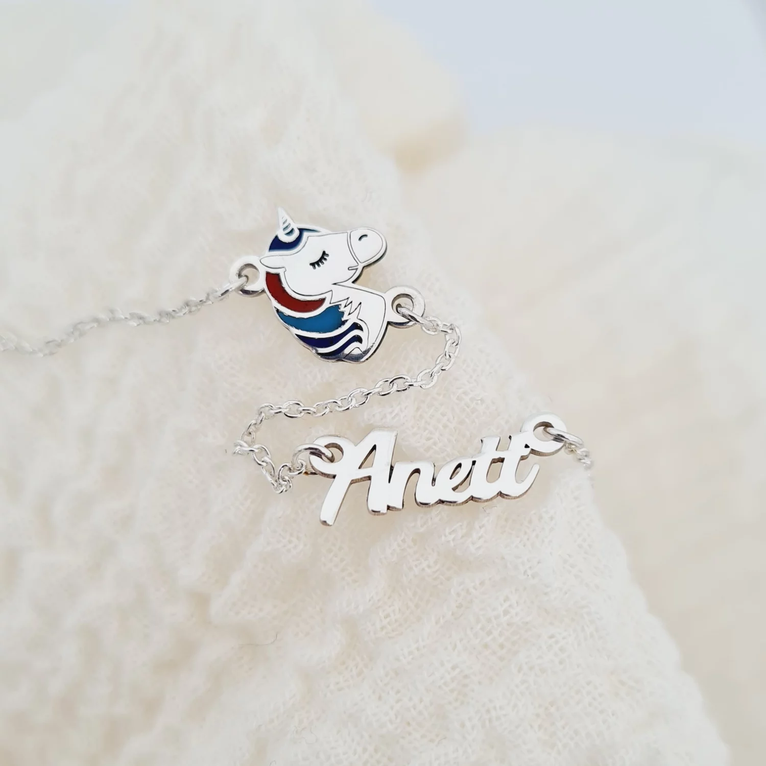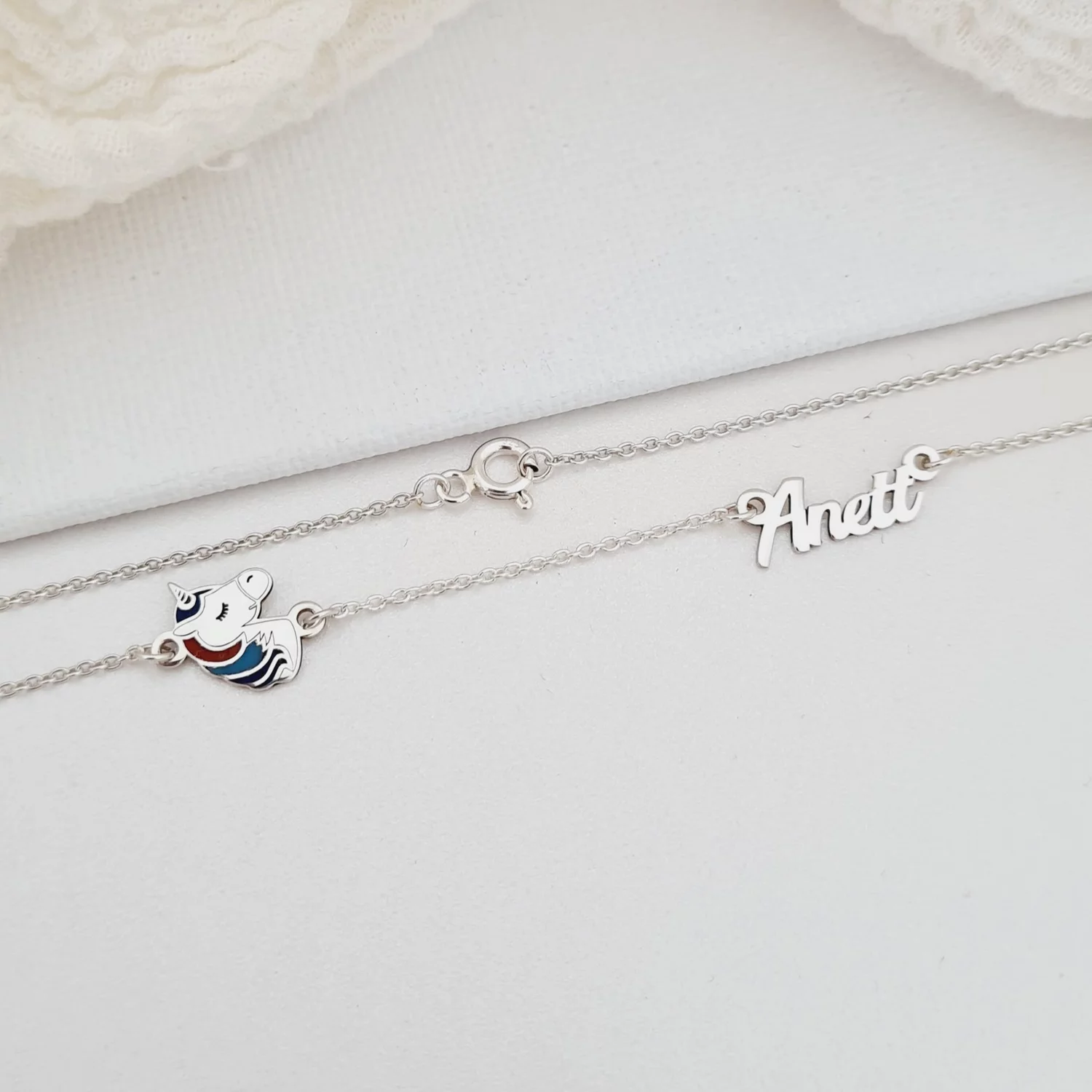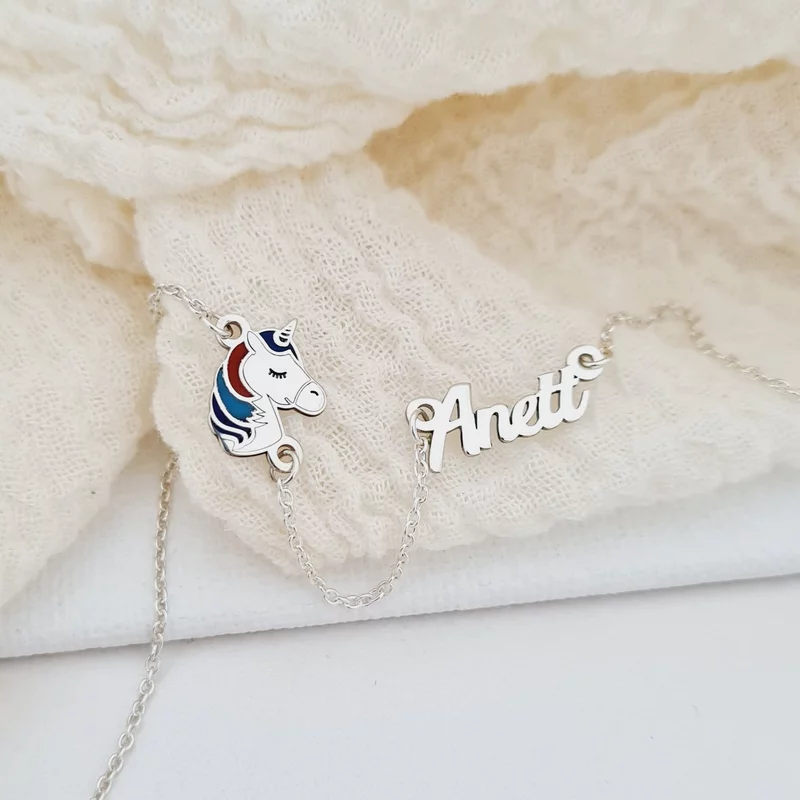 Neves Gyerek Nyaklánc - 925 Sterling Ezüst Névvel és Zománcozott Egyszarvúval