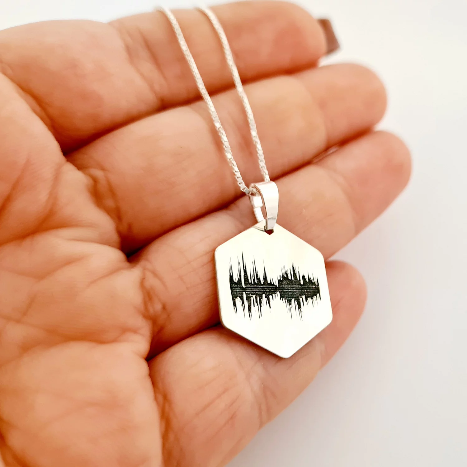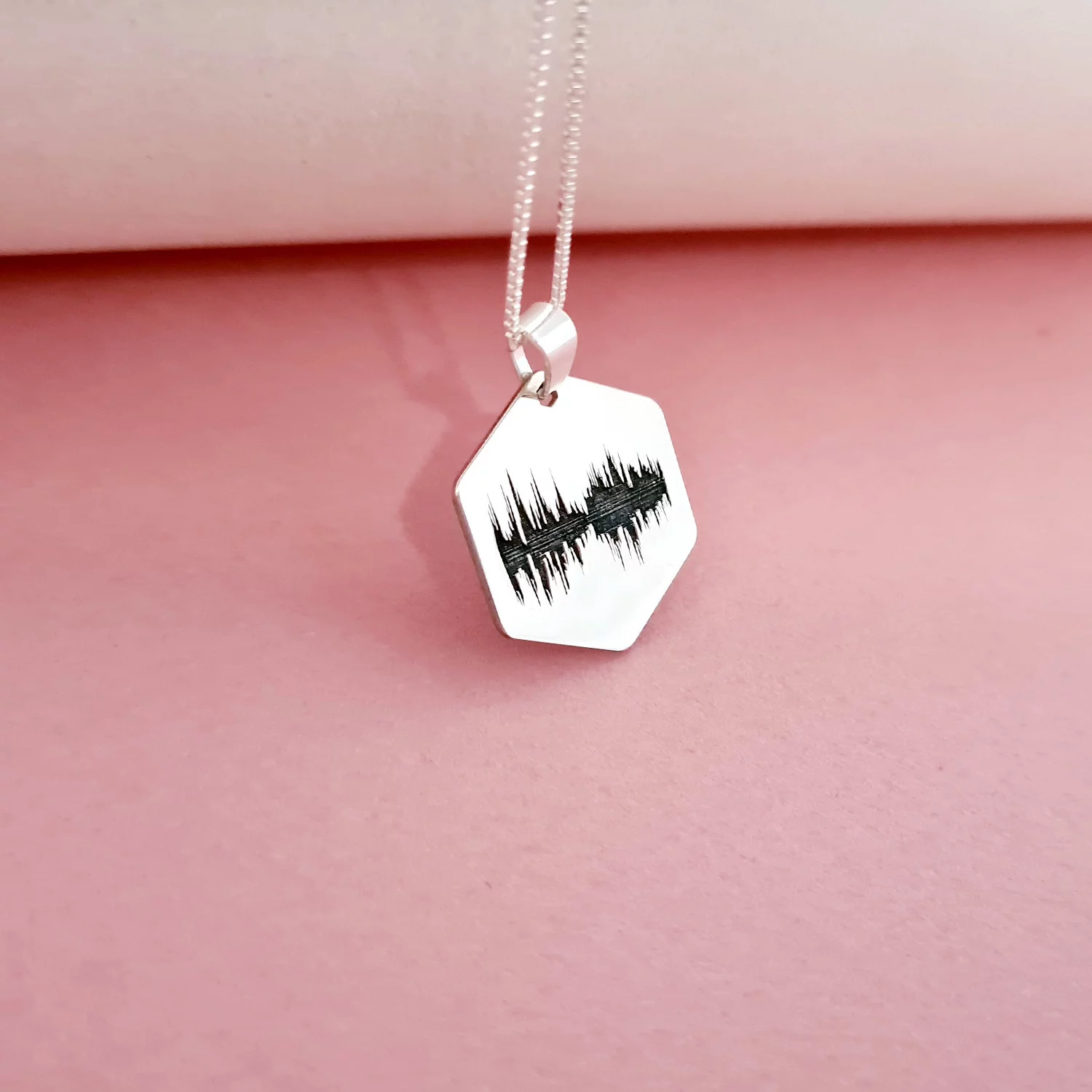 Ezüst Egységes Hatszögű Hangminta Nyaklánc