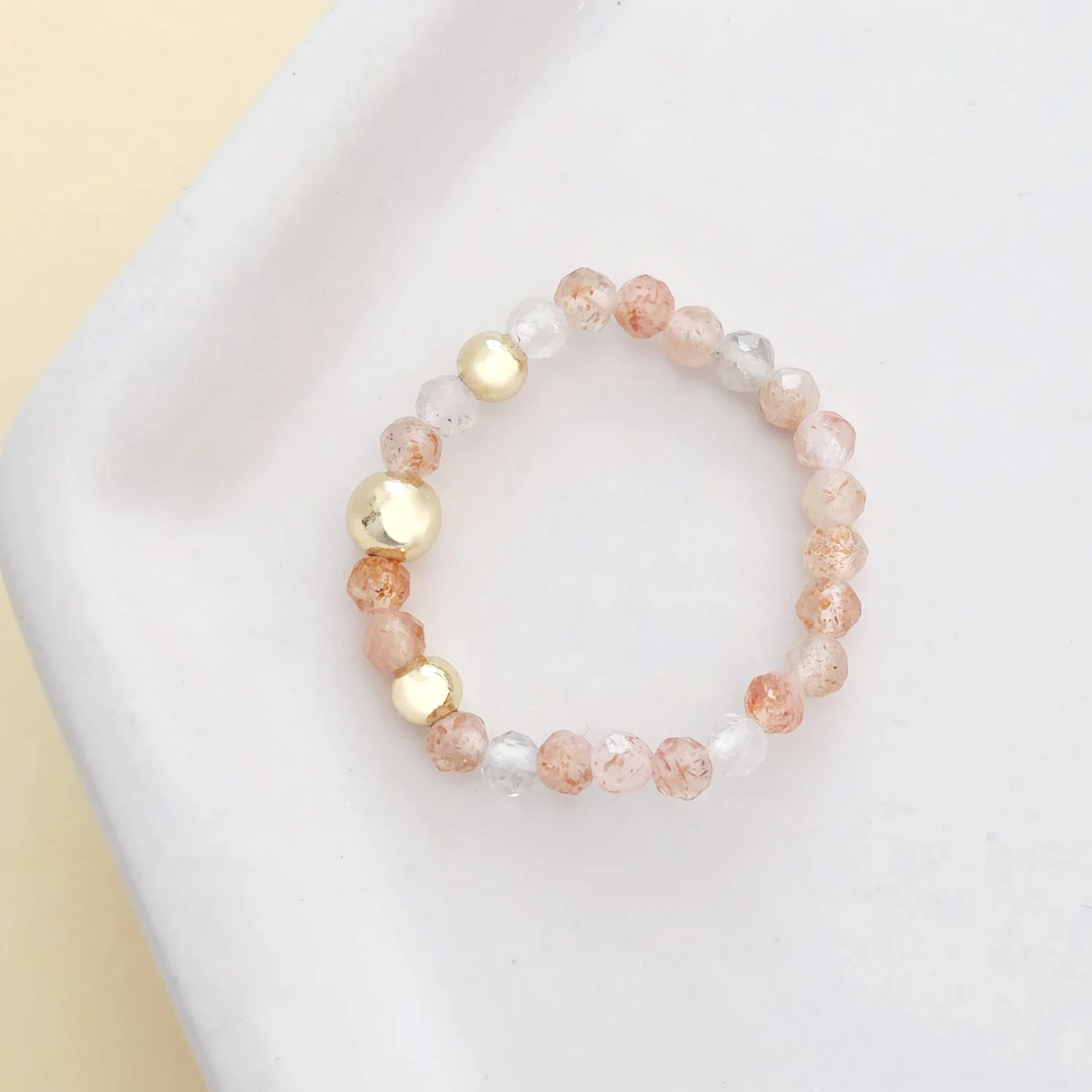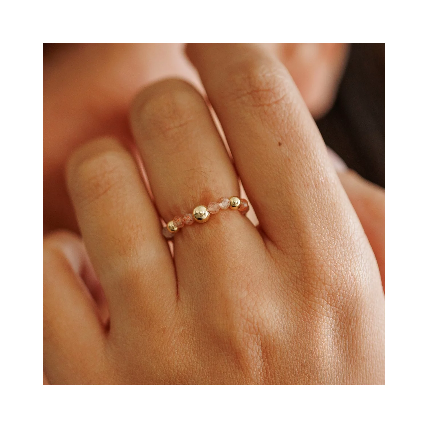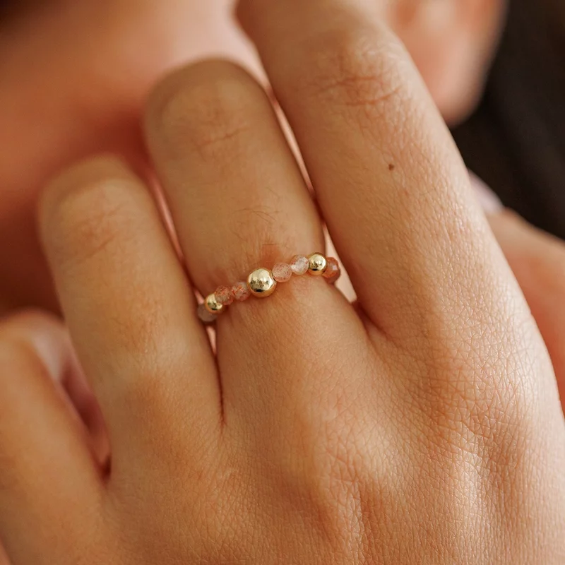 - A gyűrű narancssárga achát gyöngyökből és három 18K Sárga Aranyozott Sterling Ezüst köztes golyókból készültek.