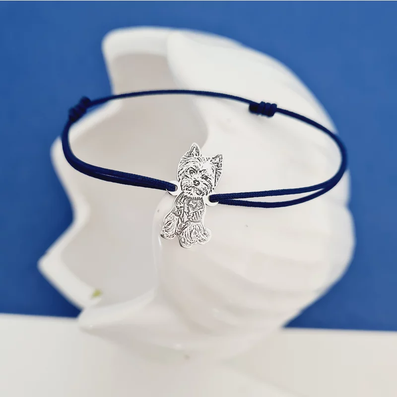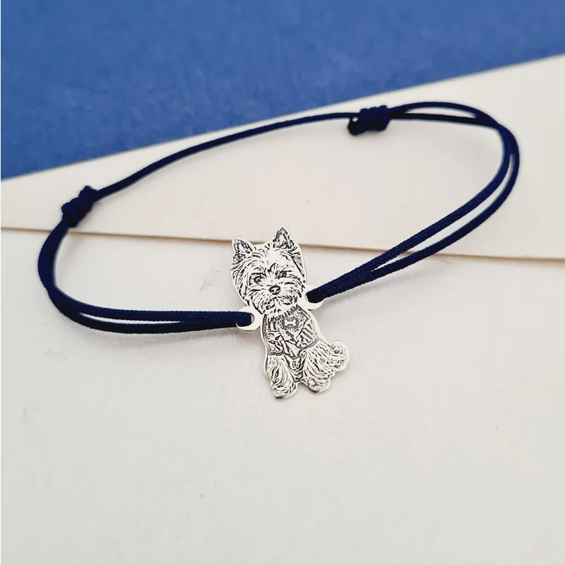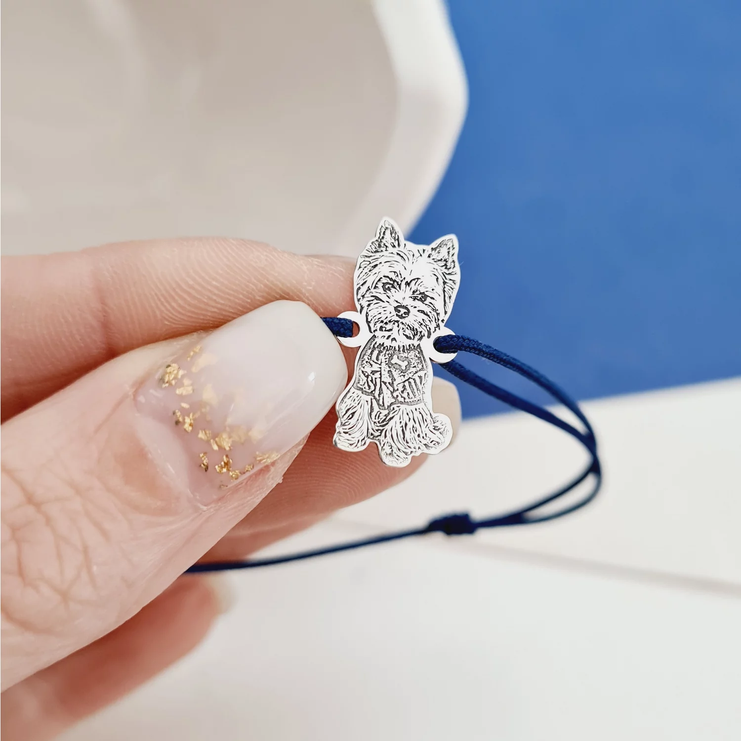 Ezüst Fotogravírozott Kutya Karkötő állítható zsinórral