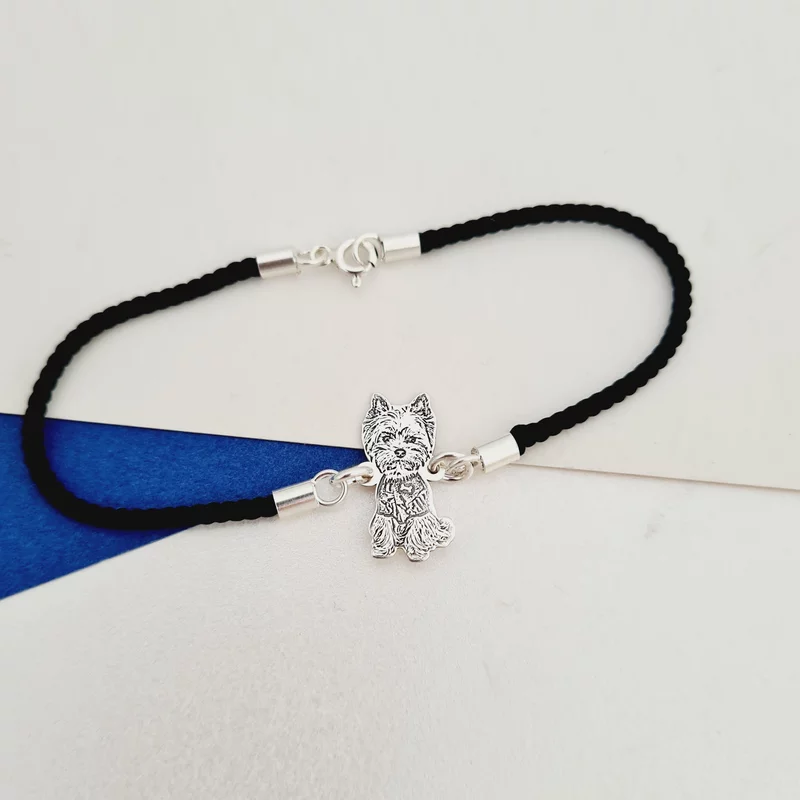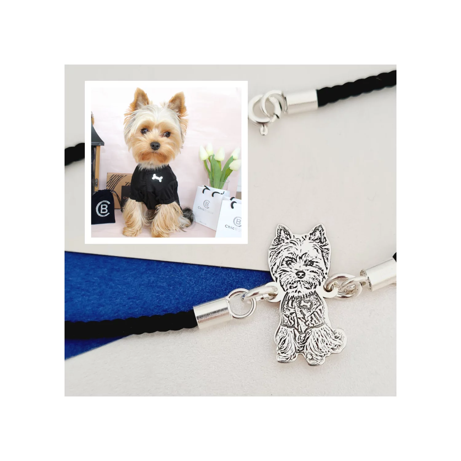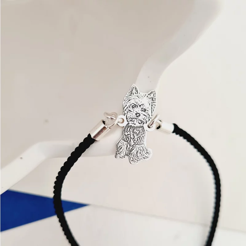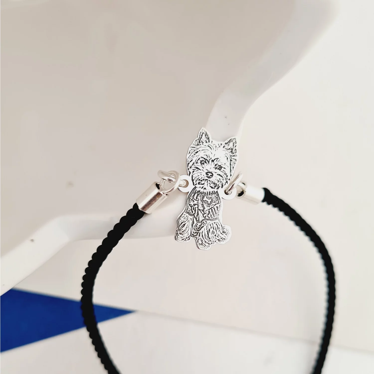 Karkötő Gravírozott Fénykép - 925 Sterling Ezüst Kutya - Vastag Fonott Zsinór