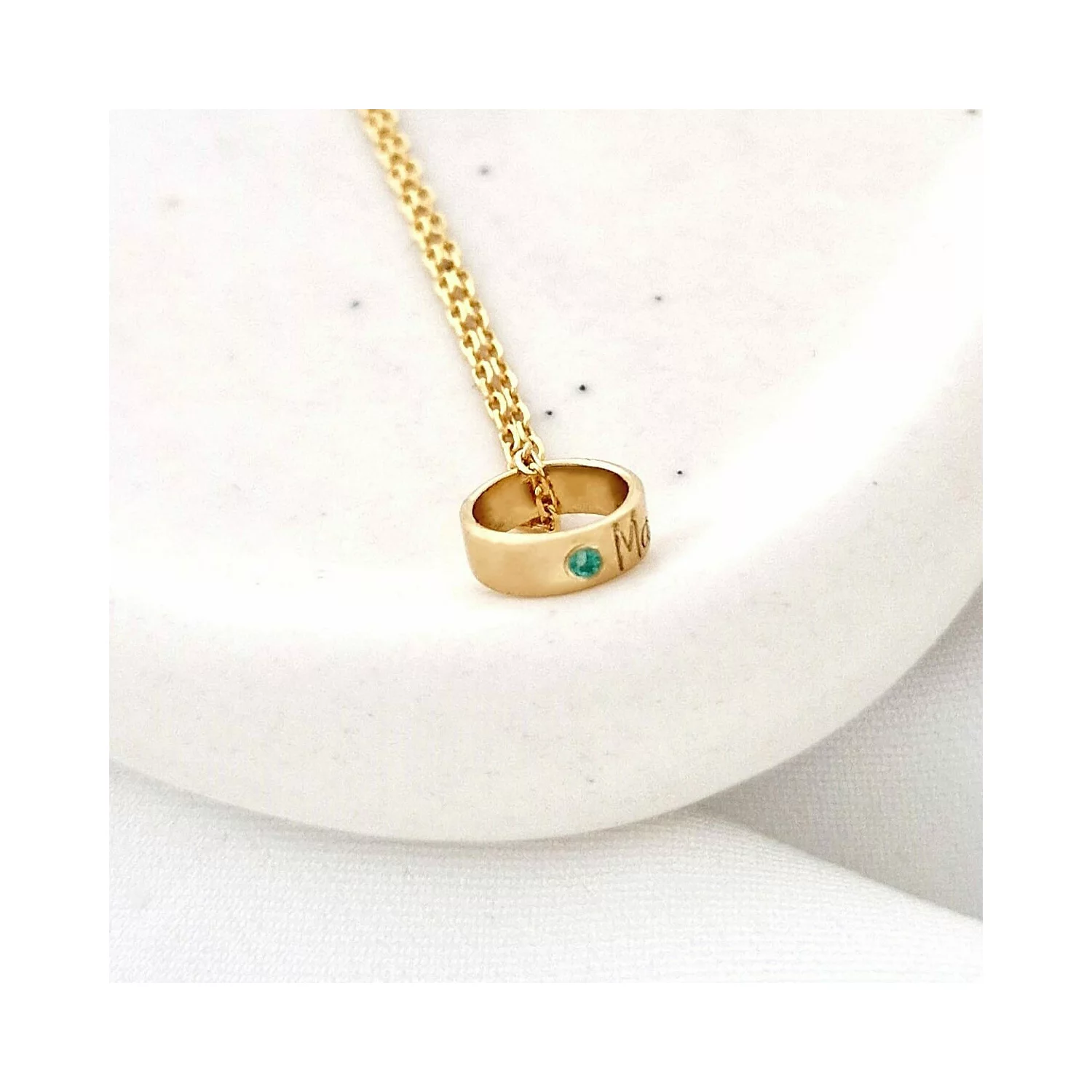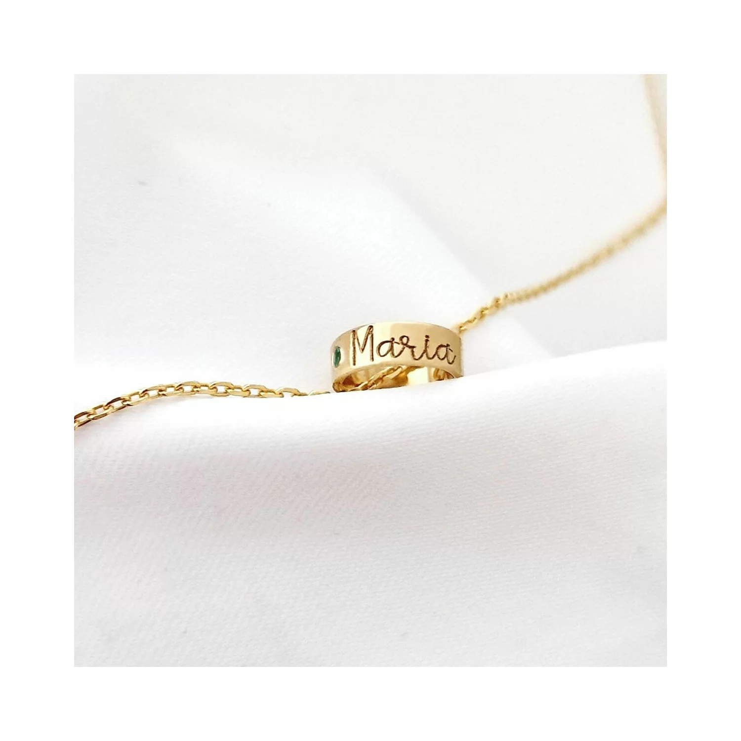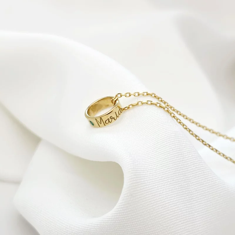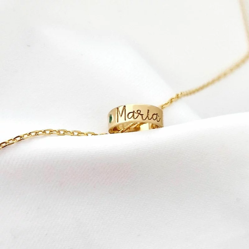 Személyre szabott nyaklánc - A Kapcsolódás Rezgései - Henger névvel és drágakővel - 925-ös Ezüst 18K Sárga arany bevonattal