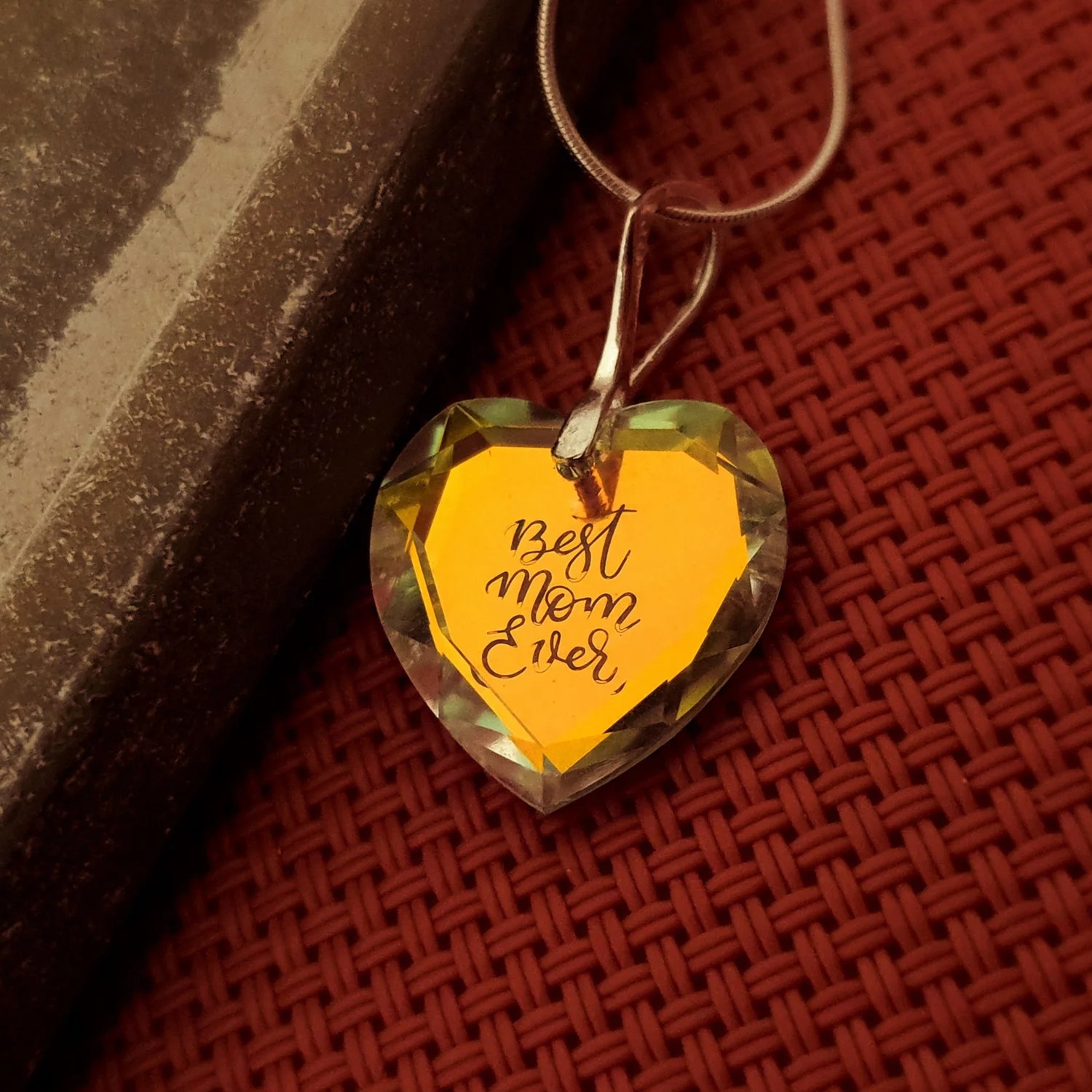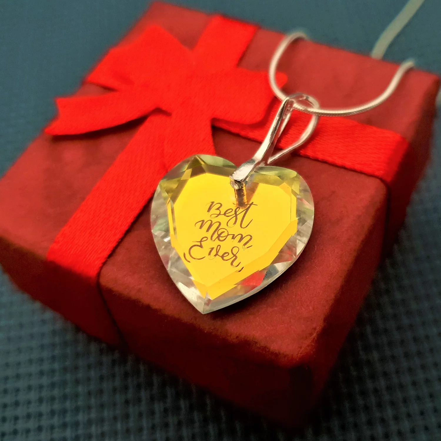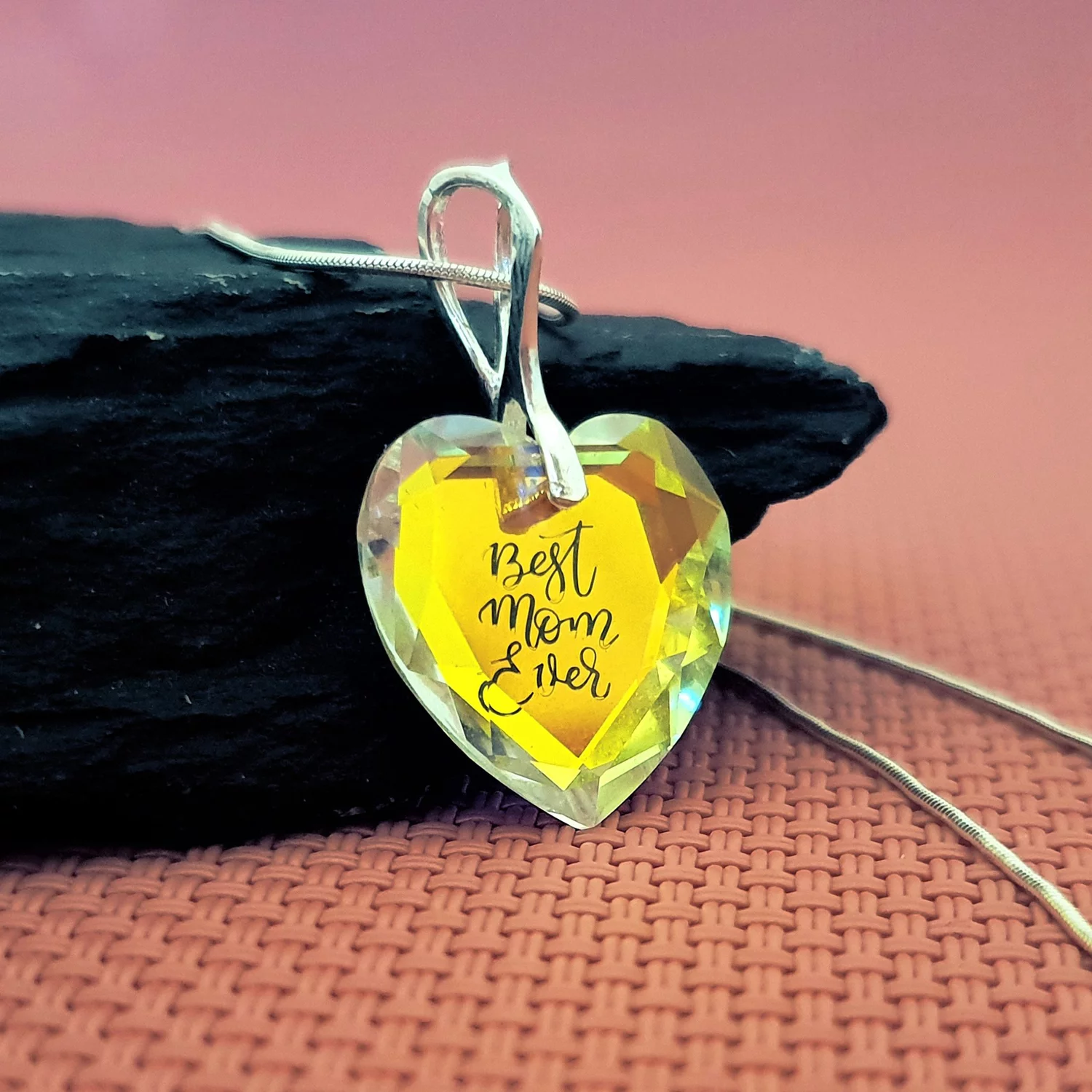 Szív formájú gravírozott Swarovski kristálylánc - A világ legjobb anyukája