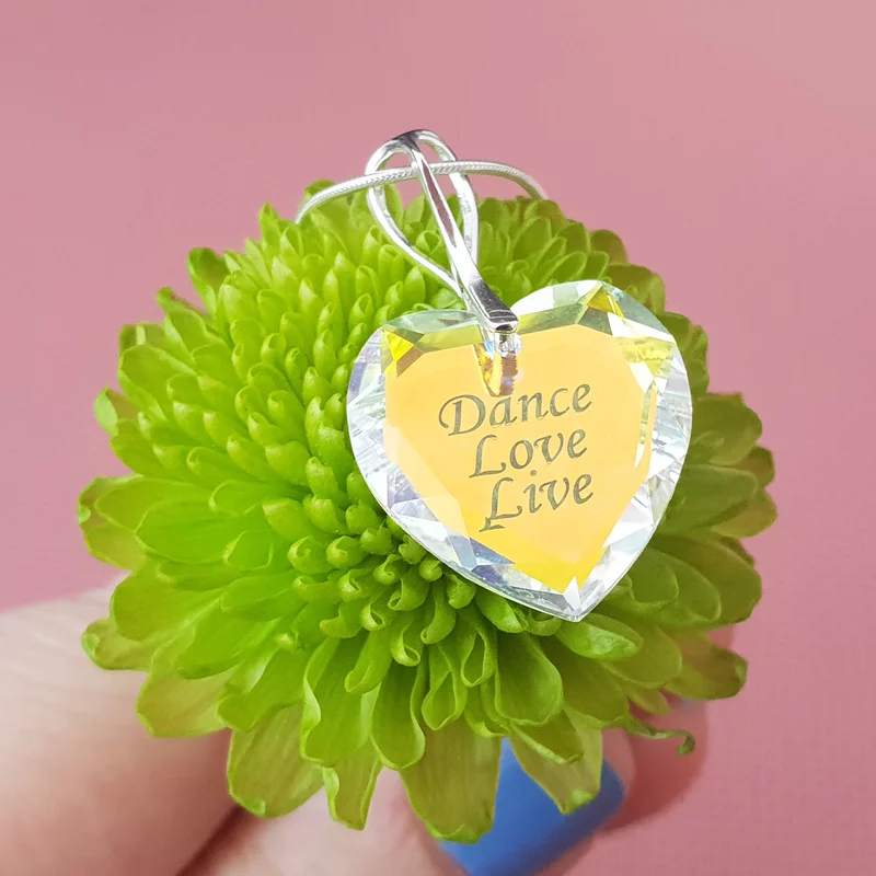 Szívbe gravírozott Swarovski kristálylánc - Live Love Dance