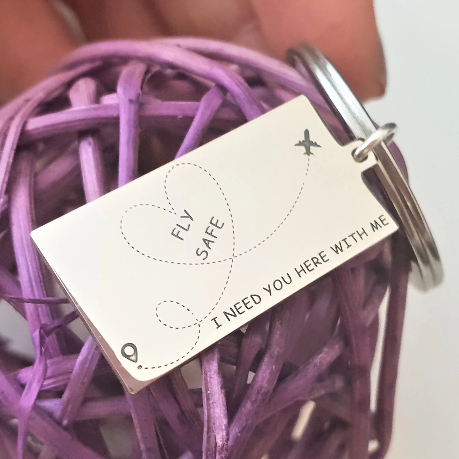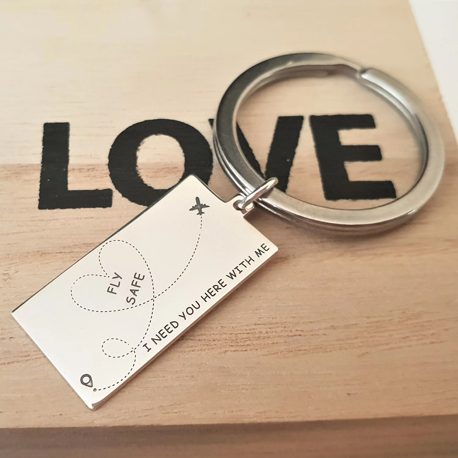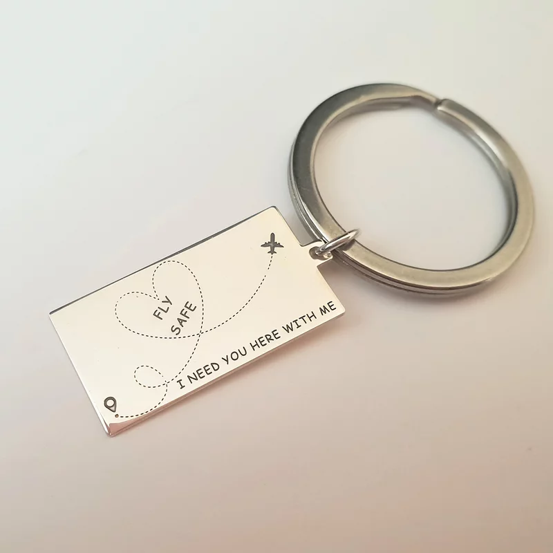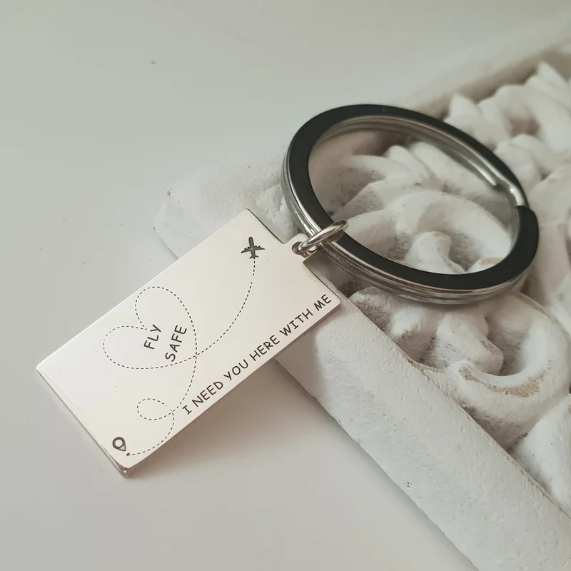 Kulcstartó, gravírozott utazási szimbólummal és szöveggel - Ezüst 925