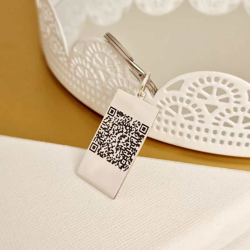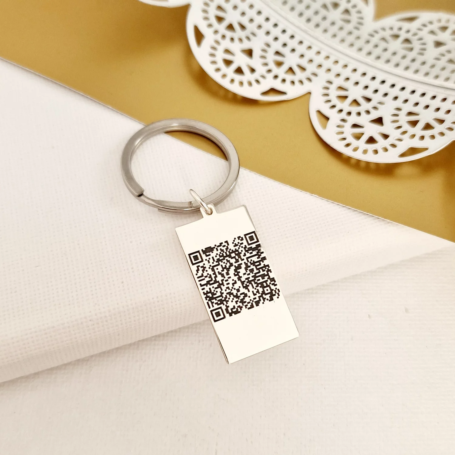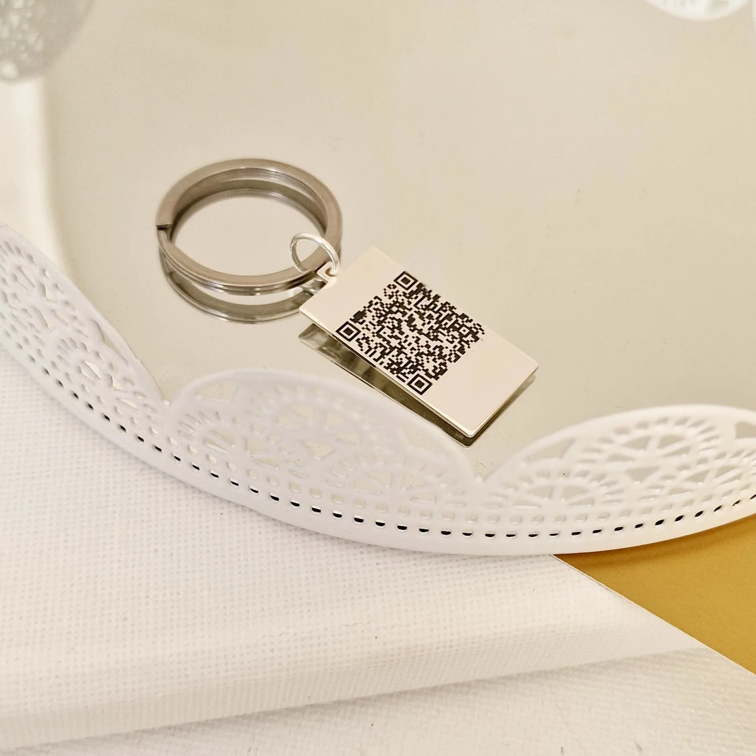 QR Kódos Kulcstartó - 925 Sterling Ezüst - Rozsdamentes Acél Karika