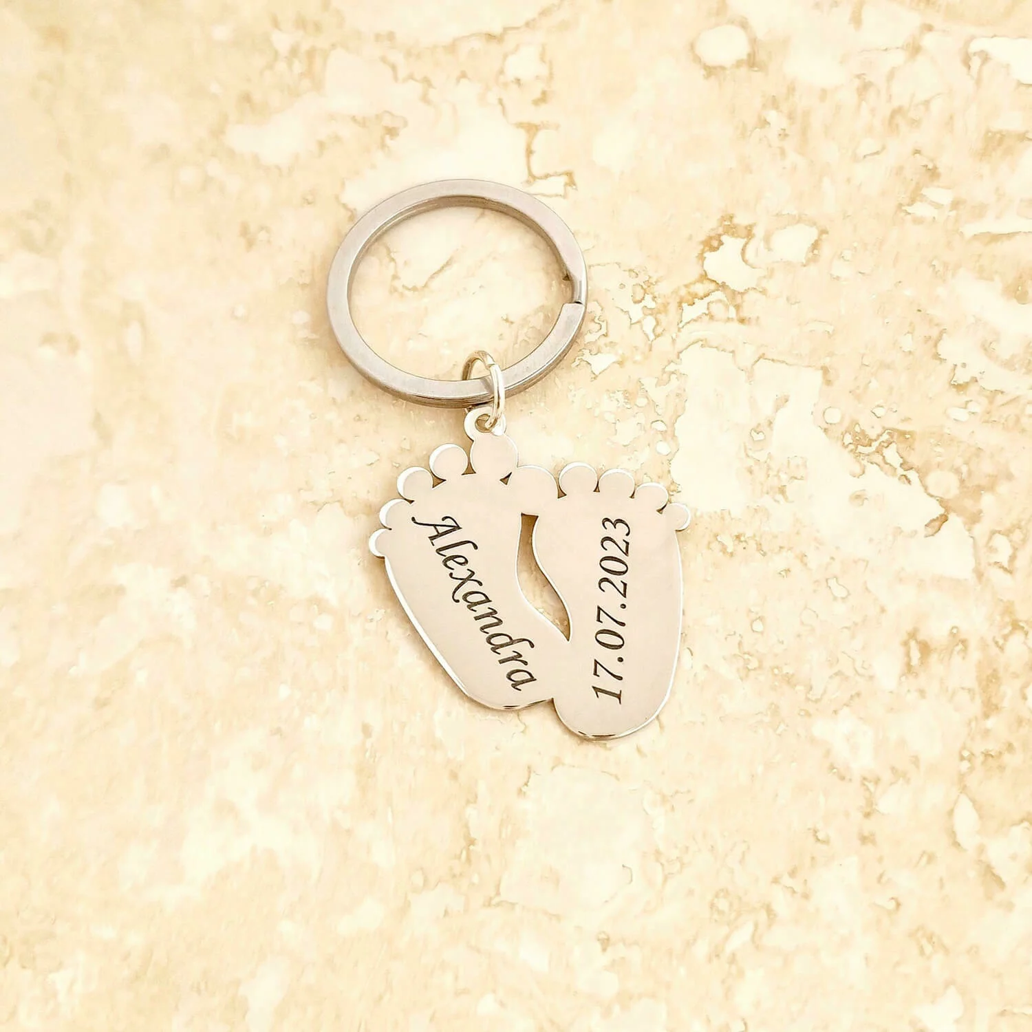 Személyre szabott kulcstartó - Gyermek lábnyom - 925 Ezüst lábmodell - Inox acélgyűrű